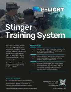 The Stinger Training System (STS) is a SLM virtual trainer built on the versatile Cyclops modular platform. Designed to deliver unmatched realism, the STS replicates the form, function, and weight of the actual Stinger.